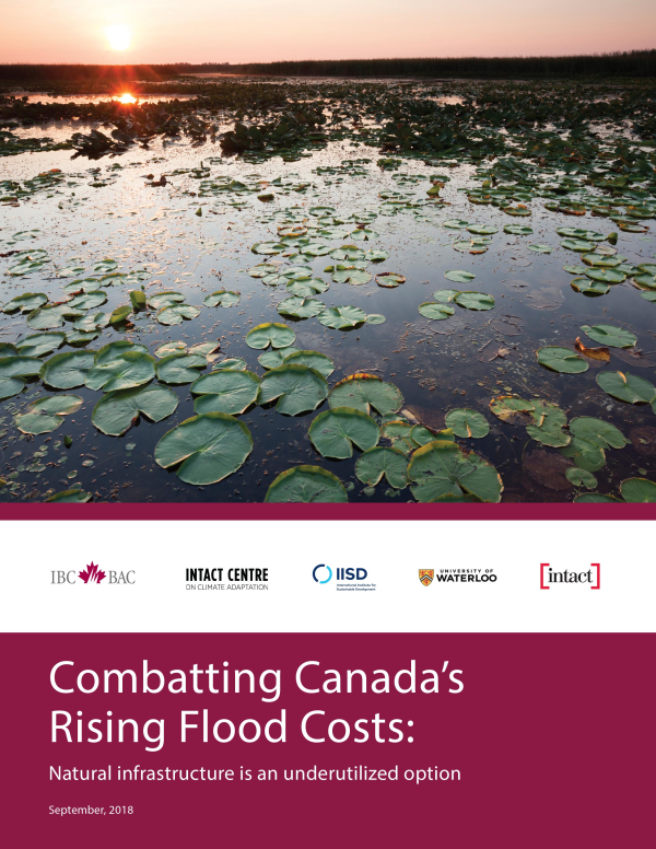 Combating Canada’s Rising Flood Costs: Natural infrastructure is an underutilized option. Prepared for Insurance Bureau of Canada. Intact Centre on Climate Adaptation, University of Waterloo Beyond the specific methods needed to assess and compare grey infrastructure against natural infrastructure options relative to their utility to mitigate risk, a framework is required that would provide guidance to those considering or opting for a natural infrastructure solution. This report presents ample evidence to suggest that efforts by governments to limit flood risk may be consistent with – and reinforce – their fiduciary responsibility to administer good governance. Flood risk is mounting across Canada from fluvial sources, such as rivers and lakes; pluvial sources, such as intense rainfall inundating urban environments; and coastal sources, such as storm surges compounded by rising sea levels. The financial impacts of climate change and extreme weather events are being felt by a growing number of homeowners and communities across Canada. The increase in P&C insurance losses is indicative of the growing costs associated with these events. These losses averaged $405 million per year between 1983 and 2008, and $1.8 billion between 2009 and 2017. Water damage is the key driver behind these growing costs. Fortunately, as documented in this report, flood risk can be limited through conservation and restoration of natural infrastructure features, such as ponds, wetlands, and vegetated areas. This report demonstrates how to quantify the benefits and costs of these natural features as a strong complement or a viable alternative to grey infrastructure option for flood mitigation. As a general “rule of thumb”, in order of preference, the most cost-effective means to mitigate flood losses utilizing natural systems is to: (i) retain what you have; (ii) restore what you’ve lost; and (iii) build what you must.