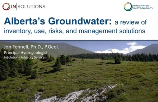 Jon Fennell is Principal Hydrogeologist with InSolutions Advisory Services. His presentation provides an overview of some of the issues related to groundwater in Alberta.