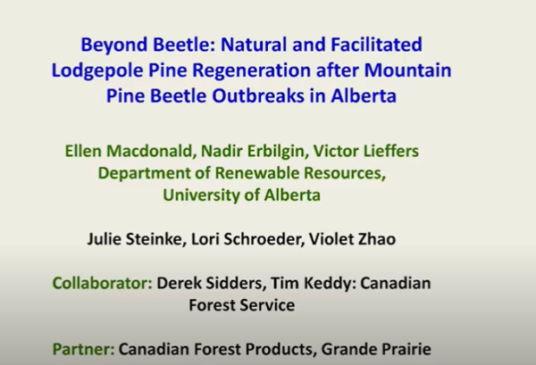 Ellen Macdonald is Professor of Forest Ecology with the University of Alberta's Department of Renewable Resources. This presentation discusses the forest rehabilitation and regeneration research done with the Beyond Beetle project.