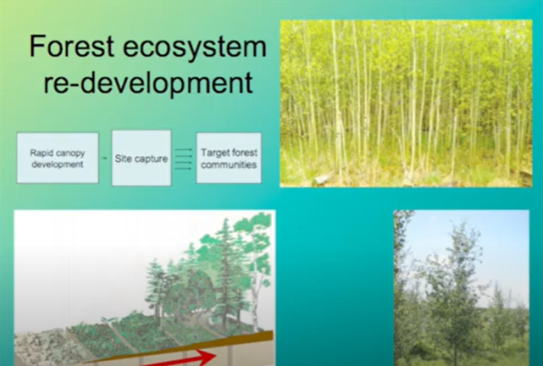 Dr. Simon Landhausser describes the role of trembling aspen in Alberta's boreal forests. Keystone species have a disproportionately large effect on their environment relative to their abundance and are key to the resilience of the community. He reviews the initial criteria for reclamation (cover) and how we have now restore functional ecosystems. He then lays out the process of reclamation when aiming for ecosystem resiliency. Dr. Landhausser discusses what makes aspen a keystone species, its root system, its wide distribution, its fast growth and open canopy, and its numerous seeds.